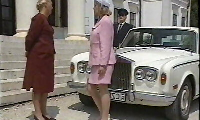 Vintage trio with two submissive honeys
