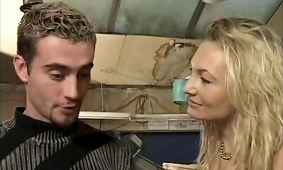 Stunning German girl with blondie hair having fun with a old guy