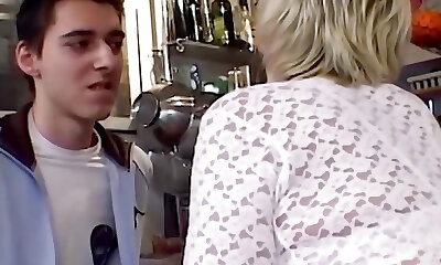 Blonde German granny gets her pussy pleased by a young man