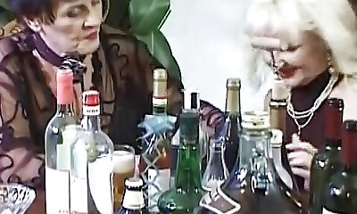 A sexy German grandmother and teen getting their holes smashed by three knobs