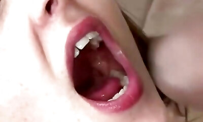 Red head big-boobed hootchie gets her tight button hole energetically massaged at first time